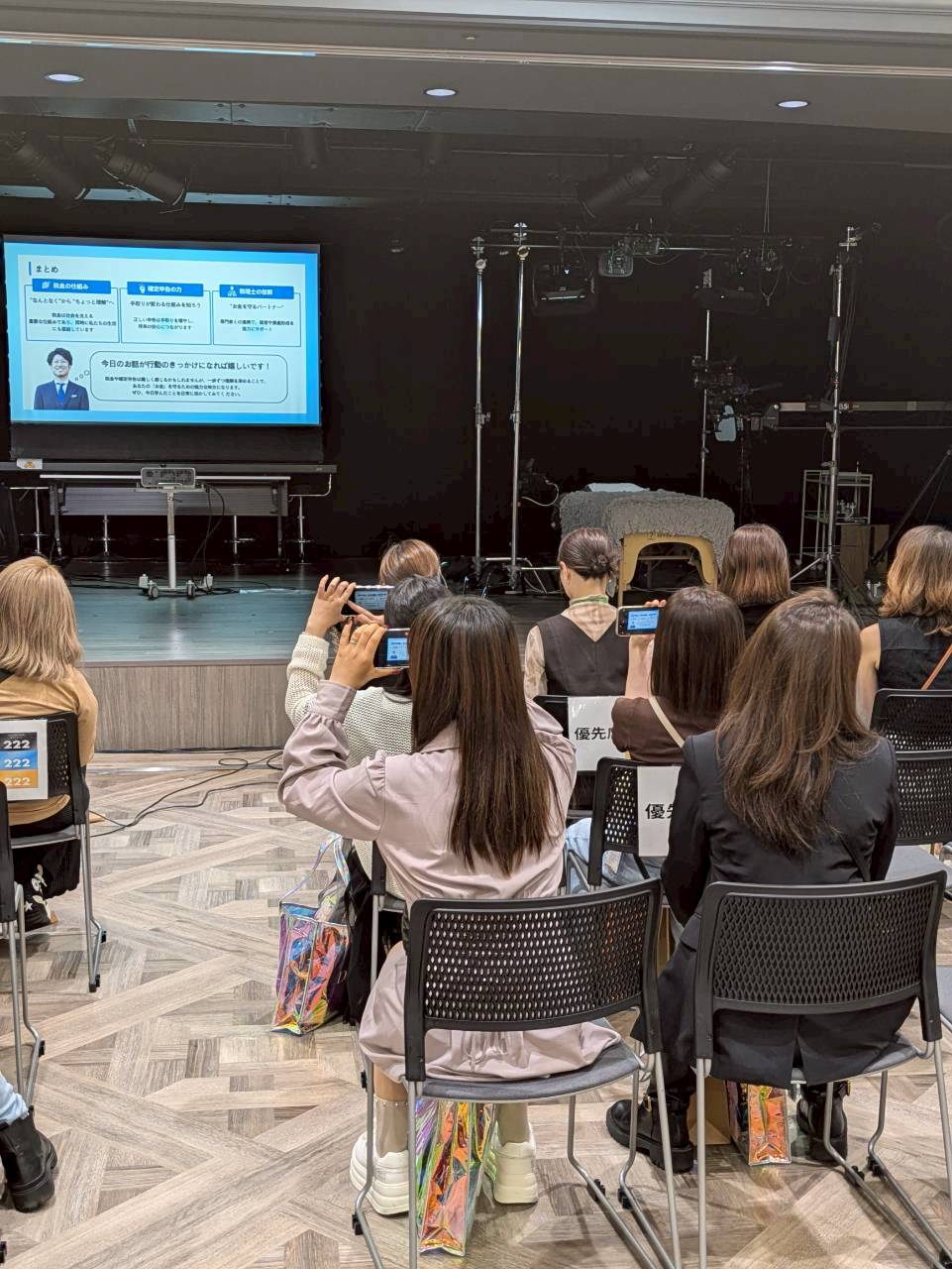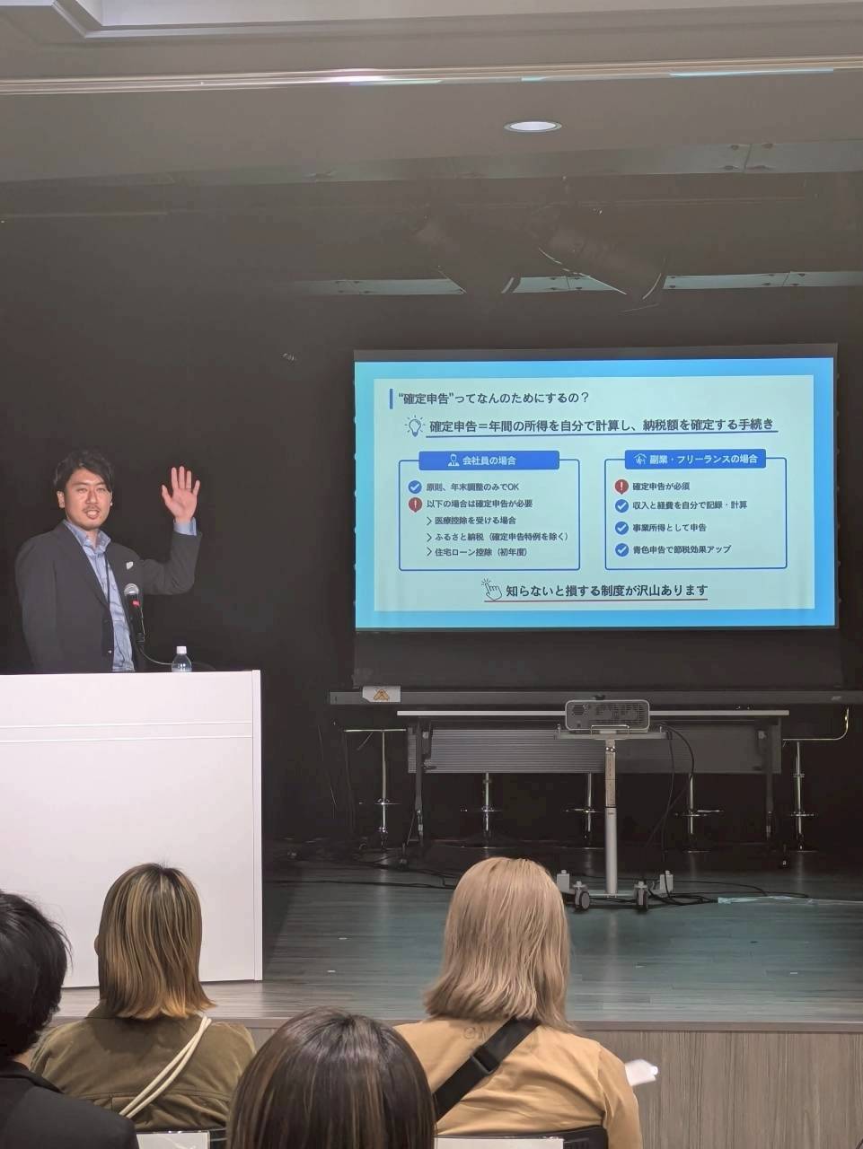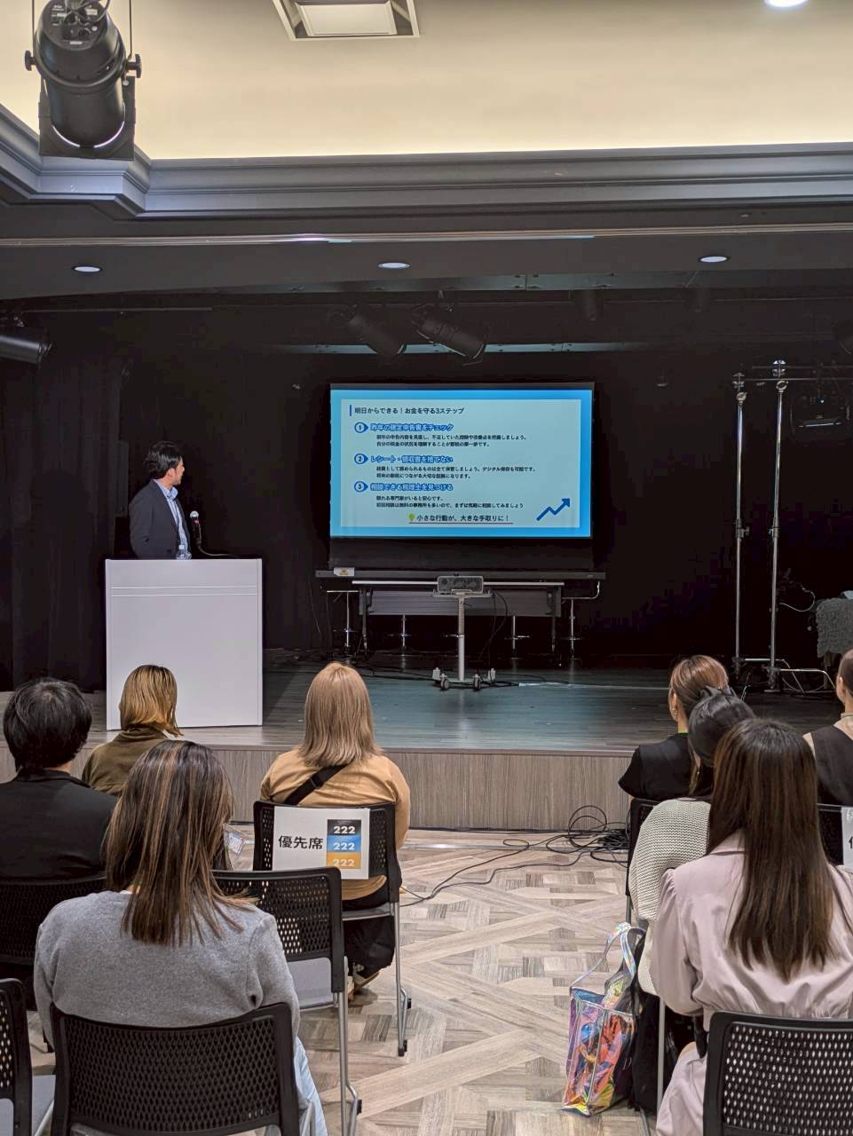 当日は、ステージ前の参加者の皆さまが熱心に頷きながら聞いてくださったり、資料画面を写真に収めてくださる場面も多く、非常に関心の高さを感じました。独立・起業に向けた“お金の考え方”に興味を持っていただけたことが、とても嬉しかったです。
